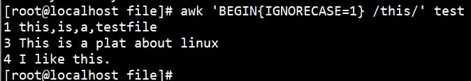 awk 'BEGIN{IGNORECASE=1} /this/' test