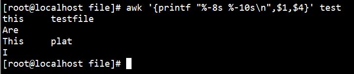 awk '{printf "%-8s %-10s/n",$1,$4}' test 例如: