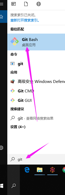 2.搜索git或開始菜單運行git,或cmd中進入git所在目錄的bin文件夾下