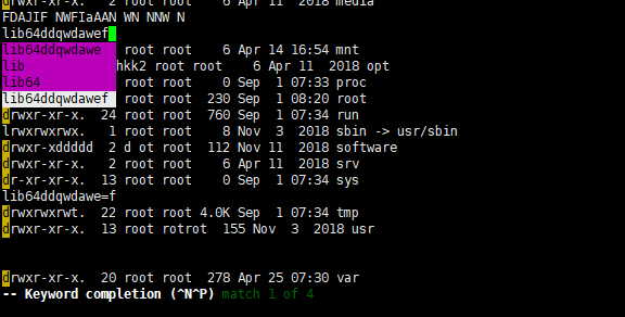 插入模式下的VIm 關鍵字 自動補全 Ctrl + p / n