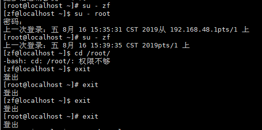 反之低權限切換到高權限用戶需要高權限用戶的密碼
