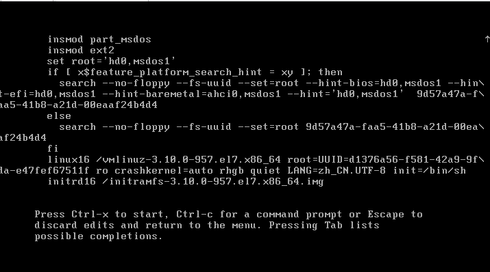 思路:進入到單用戶模式,然后修改root密碼。因為進入單用戶模式,root不需要密碼就可以登錄了。