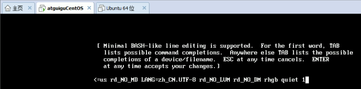 再最后一行按一個空格和1(我們輸入的那個1就是讓我們進入1級運行級別,即單用戶模式,)