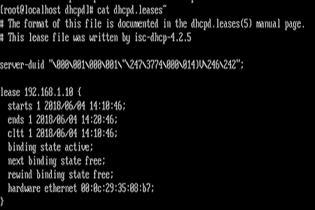 在服務(wù)端上查看/var/lib/dhcpd/dhcpd.leases~文件可知租用時間等信息:
