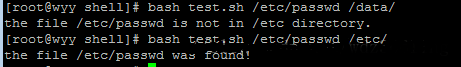 #!/bin/bashif [ $# -lt 2 ];then echo "Usage:$0 + filepath + directorypath" exitfimatch=$1found=0for file in ${2}* #在位置參數2,用戶給定的目錄中(一層目錄)遍歷所有文件do if [ $file == $match ];then echo "the file $match was found!" found=1 break fidone[ $found -ne 1 ] && echo "the file $match is not in /etc directory."