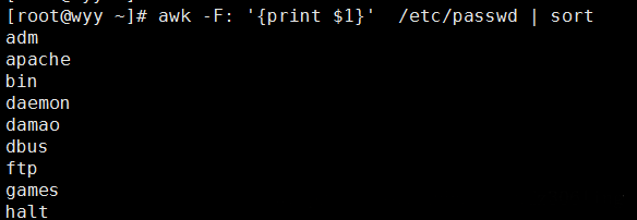 示例2:查看系統中所有的用戶名稱,并按字母排序