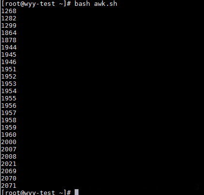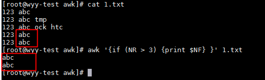 awk '{if (NR > 3) {print $NF} }' 1.txt # 輸出1.txt中行號大于3的行,其最后一列的內容