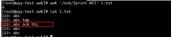 awk '/ock/{print NF}' 1.txt # 統計匹配ock的行有多少列
