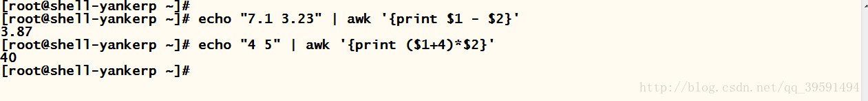 [root@shell-yankerp ~]# echo 1+2 | bc 3 [root@shell-yankerp ~]# echo 1.5+1.5 | bc 3.0 [root@shell-yankerp ~]# echo 2*2 | bc 4 [root@shell-yankerp ~]# echo 8.5-8.5 | bc 0 [root@shell-yankerp ~]#