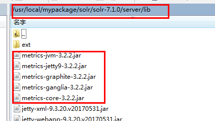 5.將/usr/local/mypackage/solr/solr-7.1.0/server/lib/ext和/usr/local/mypackage/solr/solr-7.1.0/dist復制到tomcat下的solr項目的WEB-INF/lib目錄下