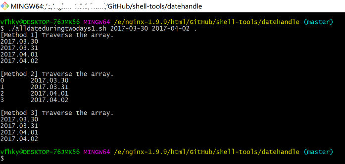 這里使用./alldateduringtwodays1.sh 2017-03-30 2017-04-02 .進(jìn)行測(cè)試,效果如下圖所示。