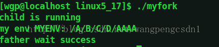 # include<stdio.h> #include<stdlib.h> #include<unistd.h> #include<fcntl.h> #include<sys/types.h> #include<sys/stat.h> #include<string.h> int main() { pid_t id=fork(); if(id==0) { printf("child is running/n"); sleep(1); char* env[]={"MYENV=/A/B/C/D/AAAA",NULL}; char* argv[]={"ls","-l","-n","-i",NULL}; // execl("/bin/ls","ls","-l","-n","-i",NULL); // execlp("ls","ls","-l","-n","-i",NULL); // execv("/bin/ls",argv); // execvp("ls",argv); // execle("./myenv","myenv",NULL,env); execve("./myenv",argv,env); printf("child id done/n"); //exec成功的話不執行此語句 exit(1); } else { pid_t ret=waitpid(id, NULL,0); if(ret>0) { printf("father wait success/n"); } else{ printf("child quit not normal/n"); } } return 0; } 下圖就是execl execlp execv execvp的結果圖