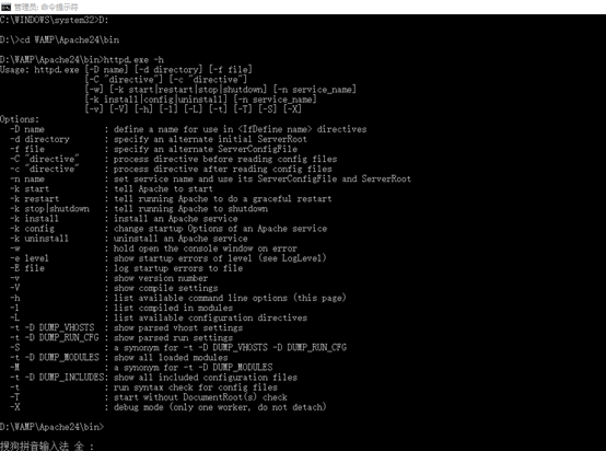 5.啟動Apache:httpd.exe -k start(或者直接寫httpd -k start).