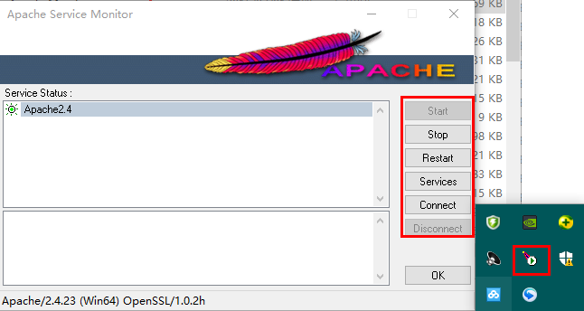 8.安裝OK!為了以后啟動方便,我喜歡將bin目錄下ApacheMonitor.exe發送快捷方式到桌面.以后啟動Apache直接雙擊它就夠了!
