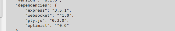 因為我安裝的Node是4.1.1版本的,太新了。而wetty原本依賴的pty.js太老,導(dǎo)致編譯出現(xiàn)的問題。修改以下wetty源代碼目錄下的package.json,將依賴的pty.js修改成最新版本0.3.0(原本是^0.2.7-1)。保存文件,然后重新運行sudo npm install命令即可。