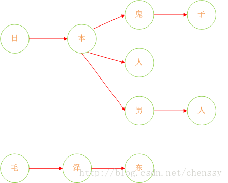 誠然,加入在我們的敏感詞庫中存在如下幾個敏感詞:日本人、日本鬼子、毛.澤.東。那么我需要構建成一個什么樣的結構呢?