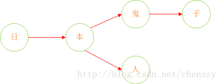 首先:query 日 ---> {本}、query 本 --->{人、鬼子}、query 人 --->{null}、query 鬼 ---> {子}。形如下結構: