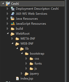 將bootstrap下載下來的文件放入WEB-INF下面的,lib目錄下,新建一個bootstrap文件: