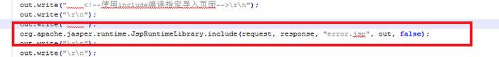 在tomcat下運行該靜態include范例后,查看生成的servlet類可看到如下代碼段
