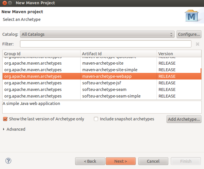 第一步,使用eclipse新建一個maven webapp工程,如下圖所示:
