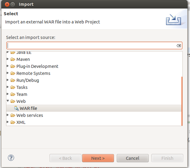這里我只導入了第一個,struts2-blank.war,導入方法為import--warfile-選擇war包,然后下一步下一步即可。