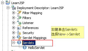 右鍵單擊Deployment Descriptor中的Servlets,選擇New->Servlet。