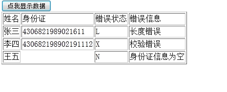 ErrorCondition r2 = new ErrorCondition("李四", "430682198902191112","X", "校驗錯誤");