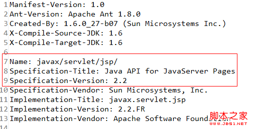 打開tomcat下lib文件下的jsp-api.jar下的/META-INF/MANIFEST.MF文件,查看jsp版本。