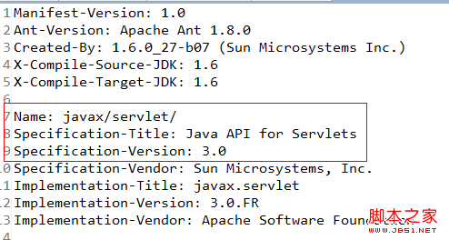 lib文件下的servlet-api.jar下的/META-INF/MANIFEST.MF文件,查看servlet版本