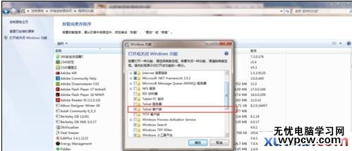 4.勾選上telnet客戶端(確定后,需要幾分鐘,耐心等待)