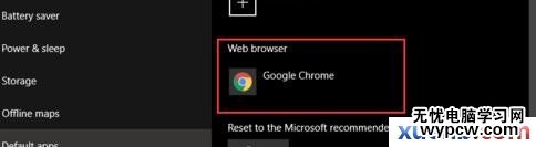 選擇“web瀏覽器”選項(xiàng) 在默認(rèn)應(yīng)用頁(yè)面的右欄找到“Web瀏覽器”選項(xiàng),如圖所示