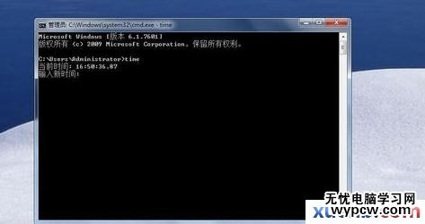 3.輸入“time”命令,按回車鍵,于是出現了編輯時間的狀態。
