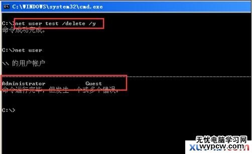 8.當然,你要刪除這個用戶的話,輸入命令: