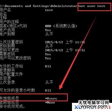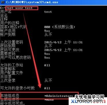 7.最后,再來查看test用戶的信息,發現test用戶已經是屬于管理員組了。
