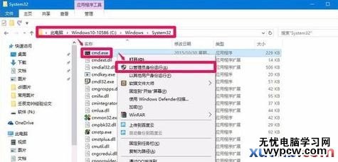 進入資源管理器 - C:/Windows/system32,找到cmd.exex,右鍵點擊cmd.exe,在右鍵菜單中點擊:以管理員身份運行(A);