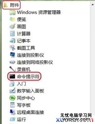 2用鼠標左鍵點擊“附件”,然后再選擇“命令提示符”即可打開。