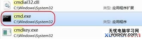 4搜索完畢后,可以在搜索結果中看到“cmd.exe”的可執行程序,用鼠標左鍵雙擊它就可以打開命令提示符程序。