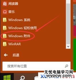 點(diǎn)擊所有應(yīng)用里的“windows 附件”,如下圖所示。