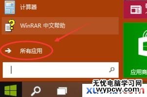 在Win10系統(tǒng)里,點(diǎn)擊開(kāi)始菜單,再點(diǎn)擊“所有應(yīng)用”,如下圖所示。