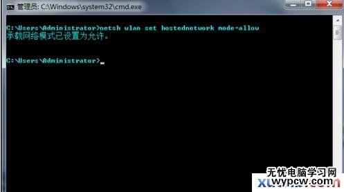 在命令提示符(cmd)下輸入命令?a target="_blank" class="infotextkey">.netsh wlan set hostednetwork mode=allow ,然后回車(chē)。把承載網(wǎng)絡(luò)模式設(shè)置為允許。如果嫌打字麻煩的話,可直接復(fù)制命令,然后在命令提示符界面上點(diǎn)擊右鍵,然后選擇粘貼就行。快捷鍵CTRL+V是沒(méi)用的。