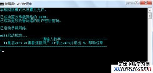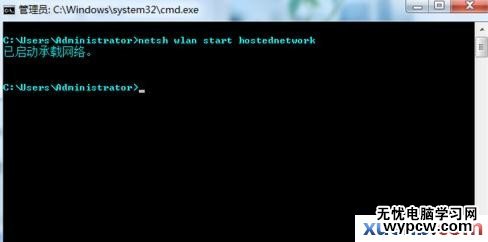 然后,在命令提示符中輸入:netsh wlan start hostednetwork,開(kāi)始承載網(wǎng)絡(luò)。這樣就成功地建立了一個(gè)wifi的熱點(diǎn),然后打開(kāi)控制面板->網(wǎng)絡(luò)共享中心,你就可以看到你所創(chuàng)建的無(wú)線網(wǎng)絡(luò)連接了。現(xiàn)在用手機(jī)或者筆記本電腦就可以搜索到你的wifi了。