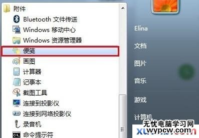 也可以在主菜單 — 所有程序 — 程序 — 便簽