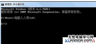 2在命令提示符窗口中輸入:cd/ 按回車(Enter鍵)進入系統盤根目錄。