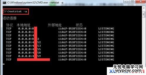 進入C盤的根目錄下輸入“netstat -a”后按【Enter】鍵,用于查看本地計算機的連接和監聽端口