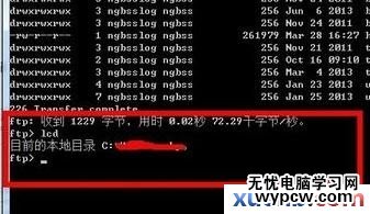 輸入"lcd 本地文件目錄"(就是要下載到那個文件夾下 就輸入那個目錄,如果不輸入就是默認c盤的當前系統用戶目錄下)