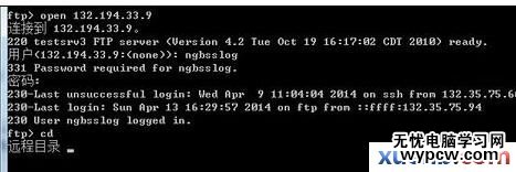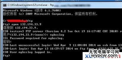 輸入"ftp"切換到到ftp下面.然后輸入"open 服務器地址".點擊回車鍵.會提示你輸入用戶名和密碼.