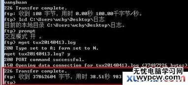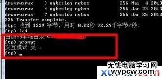 輸入"prompt"命令(打開交互模式),最后輸入"mget 服務其上要下載的文件名",回車鍵.這樣就可以進行下載了.看到"Transfer complete"就表示下載成功了.到本地路徑下就能看到下載的文件了.