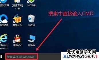這里我們在Windows10系統的搜索框中直接輸入命令CMD。