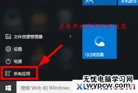 點擊開始菜單,然后界面中我們這里選擇所有應用打開進入,如圖所示