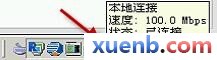 windows server 2003 及windows xp查看的方法相同,如下圖將鼠標移到右下角將會顯示當前速度是100M,說明百兆網絡